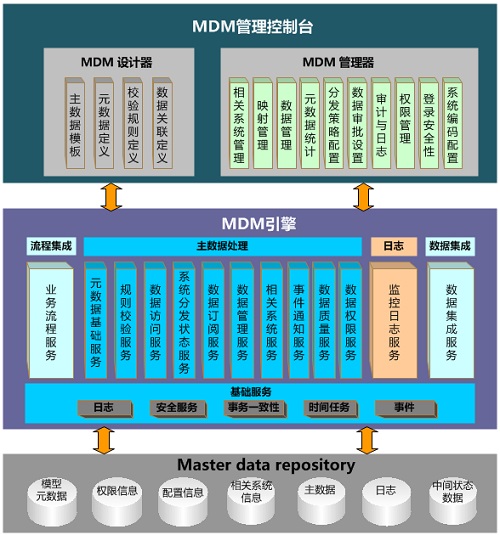 产品简介主数据是指在整个企业范围内各个业务系统间要共享的数据, 比如:客户、供应商、产品/物料、帐户、资产/设备、组织机构等。通常企业业务系统的构建更多是以项目为中心,从下而上的构建系统,而不是至上而下的构建系统,必然缺乏整个企业范围内的统一规划,从而使得一些需要在各个业务中共享的数据(主数据)如:人员、组织、产品、客户等被分散到了各个业务系统进行分别管理。分散管理的主数据由于没有不具备一致性、准确性、完整性,使得各个企业普遍存在数据统计口径不一致、不准确、以及数据集成、业务系统对接、业务流程重组再造困难的现象。 ![]() 解决这一问题的根本方法就是引入主数据管理(MDM),主数据管理可以帮助创建并维护整个企业内主数据的单一视图,保证单一视图的准确性、一致性以及完整性,从而简化数据清洗工作、提高数据质量、加快业务系统对接、业务流程再造速度,提高业务响应速度。 基于MDM主数据管理的企业信息化系统,各业务系统复用一套主数据,各系统就像一个大系统的各个业务功能模块,企业IT架构可以实现柔性调整、升级、改造,从而支撑企业的业务战略目标落地。在数通畅联软件的产品家族中基础数据平台命名为AEAI MDM。 产品架构AEAI MDM基础数据平台的产品架构如下图所示,主要由MDM管理控制台、MDM引擎、MDM资源库三大部分组成。![]() 其中,MDM控制台有两个模块:MDM设计器、MDM管理器;MDM引擎共包括流程集成、主数据处理、日志处理、数据集成四部分;主数据资源库包括:模型元数据、权限信息、配置信息、关联系信息、主数据、日志、中间状态数据等。 产品用途MDM主数据管理通过从各个操作/事务型应用以及分析型应用中分离出主要的信息,使其成为一个集中的、独立于企业中各种其他应用核心资源,从而使得企业的核心信息得以重用并确保各个操作/事务型应用以及分析型应用间的核心数据的一致性。从业务系统角度而言,MDM主数据管理的用户是各业务系统、数据集成系统、应用集成系统、业务流程再造系统、BI智能决策分析系统。通过主数据管理,改变企业数据利用的现状,从而更好地为企业全方位的信息整合做好铺垫。 MDM主数据管理是将人员、流程和技术有机的结合形成一套完整的管理机制去保证主数据成为企业的宝贵资产。在整个企业内部制定并执行统一的、符合业务业务要求的、科学合理的数据标准,通过数据标准的执行使得企业内部的各个业务环境使用的主数据完整统一,且只有一个真实的、高质量的版本。通过主数据的使用率和用户对企业数据质量的信任度、最终满足企业的诸多管理战略目标的需求。 产品特性除了产品可直接下载使用、相关产品之间可以良好协作支撑以外,AEAI MDM基础数据平台还具有以下特性: