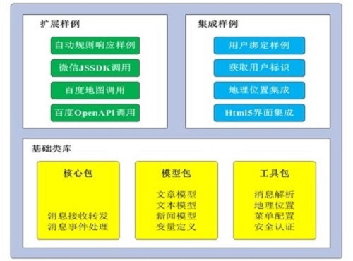AEAI WX 微信扩展平台是基于 Java 封装的微信公众号二次开发框架,基于该框架可以快速接入微信,实现自定义菜单创建、信息按规则自动回复、集成企业的线上系统(HR、CRM、微店、网站等)、同时可以整合集成互联网开放资源(如:百度地图、天气预报、热映电影等)。